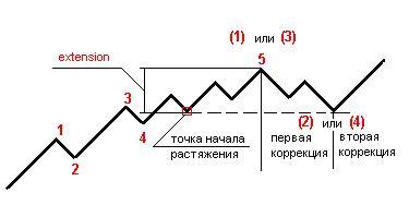 Во-первых, растягиваться должна только одна из импульсных волн. Остальные две сохраняют одинаковые параметры по времени и протяженности. Двойная коррекция растянутых пятых волн